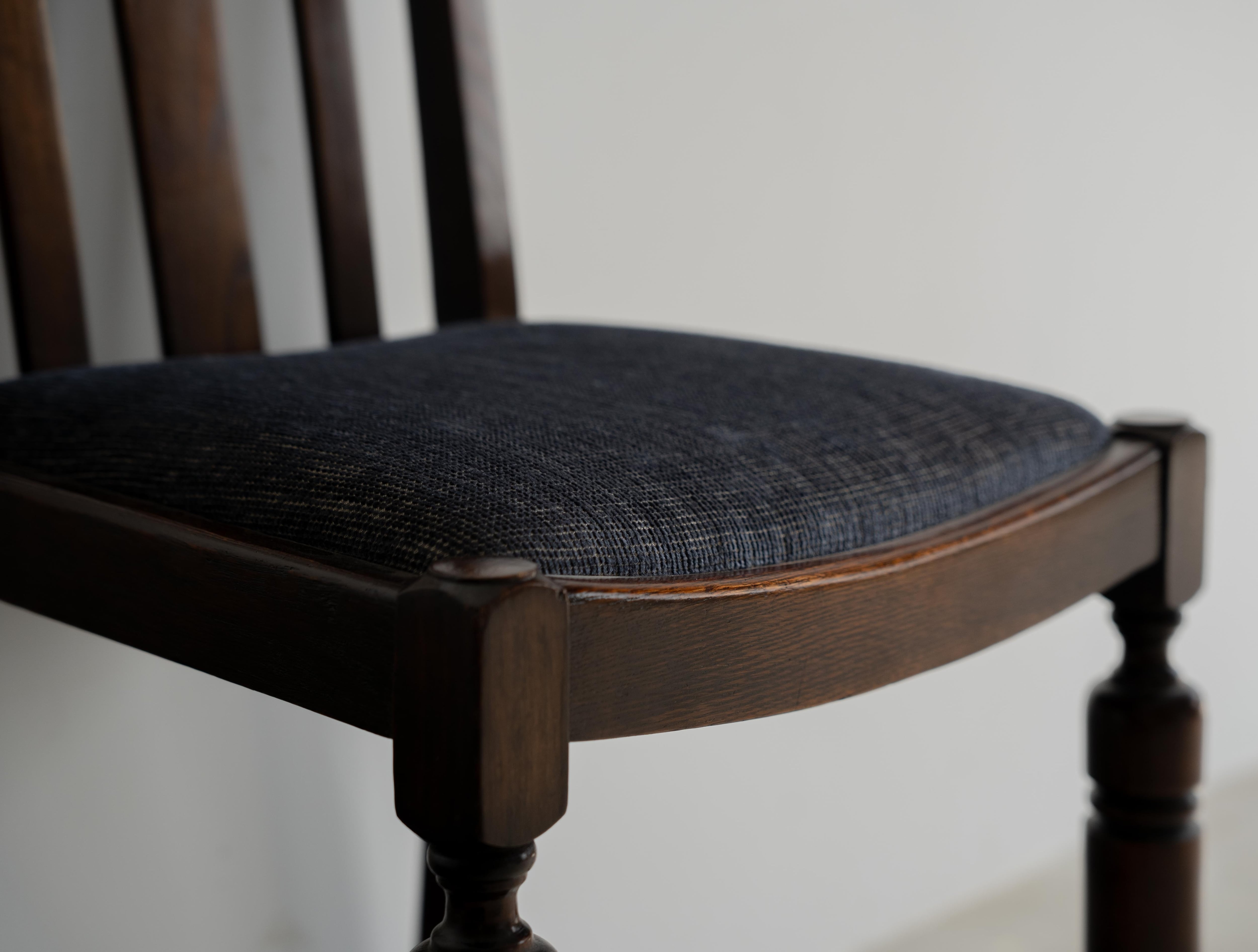 年月を経たオーク材の質感と、挽き物脚の組み合わせがクラシックな雰囲気を醸し出しつつも比較的シンプル、置いただけで絵になるチェアです。