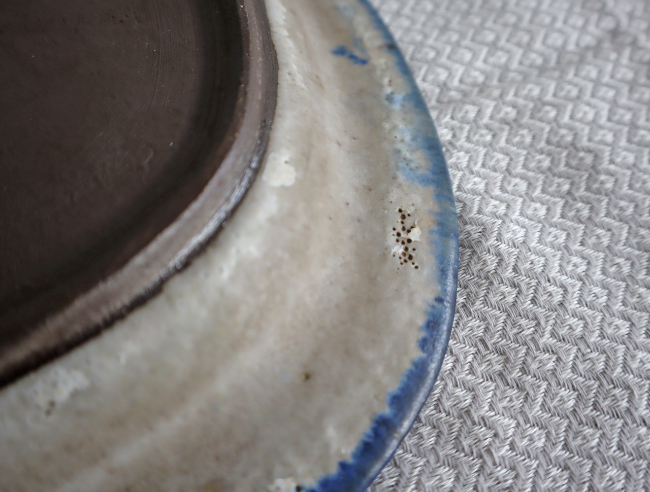 表面下部に製造段階で付いたと思われる釉薬の跡がございますので、画像でご確認ください。