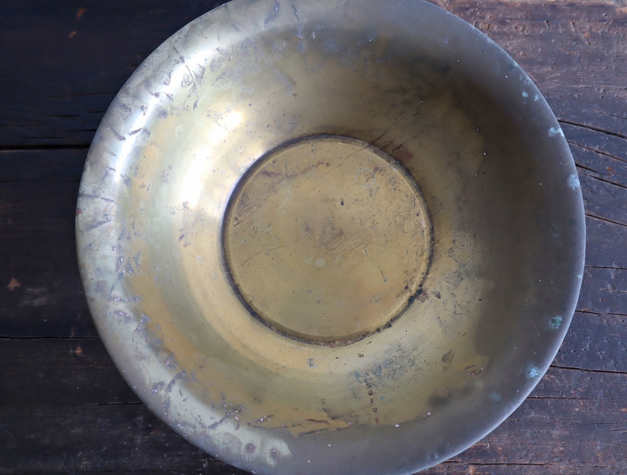 使い込まれた経年変化が美しい真鍮のウォッシュボウル。