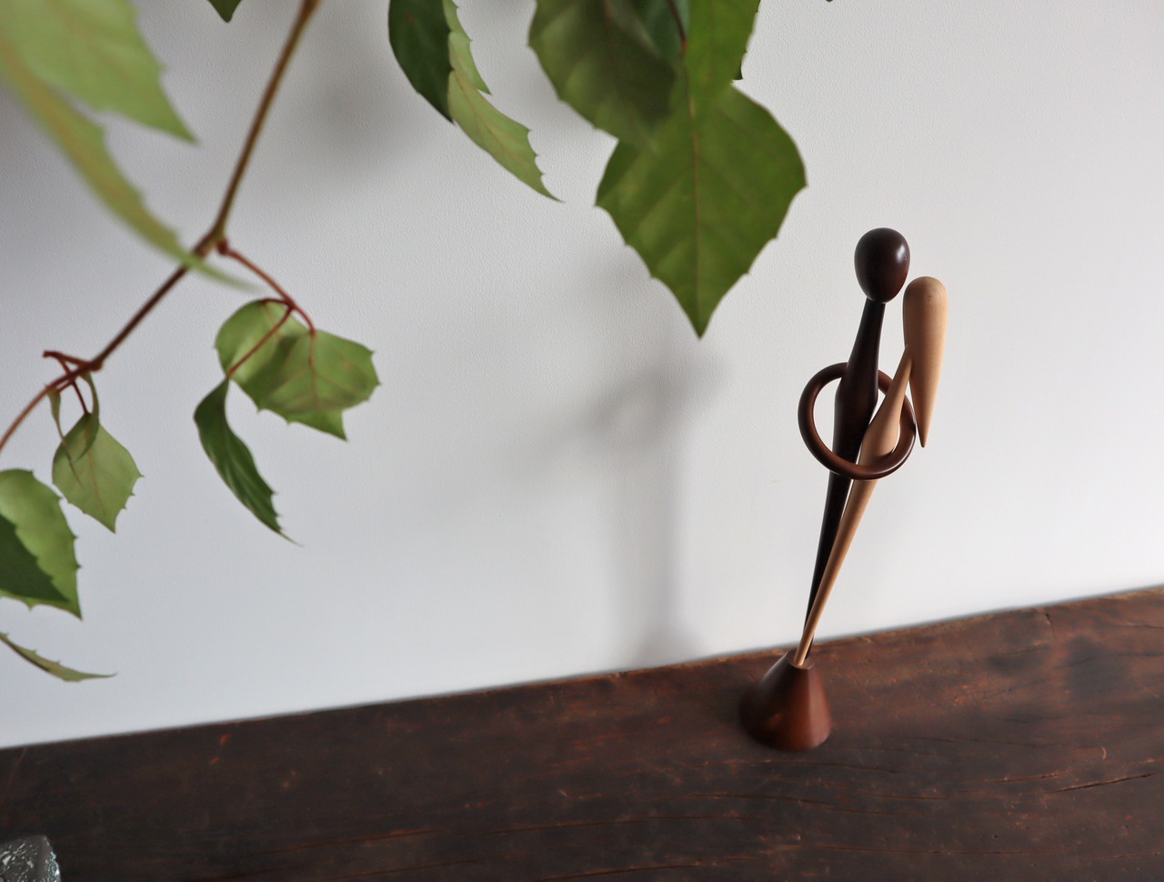 見る角度によって寄り添って話している様にも、並んで歩いている様にも、キスしてたり、抱き合っていたりとも見てとれ、一つの輪の中の男女にいくつものストーリーを感じさせるオブジェです。