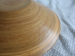 厚さ1ミリほどのテープ状にスライスしたブナ材をコイル状に巻きつけ、それを中心から少しずつ押し出すように成型し形状するという独特の製法で手作りされている器です。