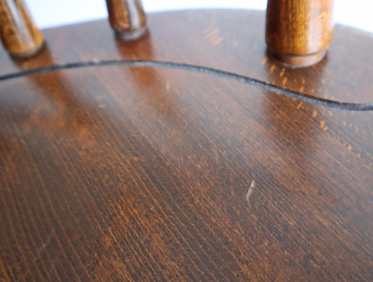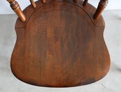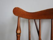トップの笠木パーツから櫛状にスピンドル(挽き物)スポークが並ぶ通称「コムバック」の背もたれに、強度を上げる役割と見た目にも美しいV字を描くブレイシングスティックによるデザインは、17世紀後半に英国で生まれたウィンザーチェアの歴史を踏襲する本格派。