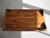 天板は緩やかな浮造り加工が施されている凹凸のあるデザインのため、ショットグラスサイズですと少々かたつきが気になる箇所もございますが、グラスやカップアンドソーサー等、底面積があるものであれば気にせずご使用いただける、コーヒーテーブルの名の通りゆったりとしたコーヒータイムにぴったりのインテリアの主役となってくれるテーブルです。
