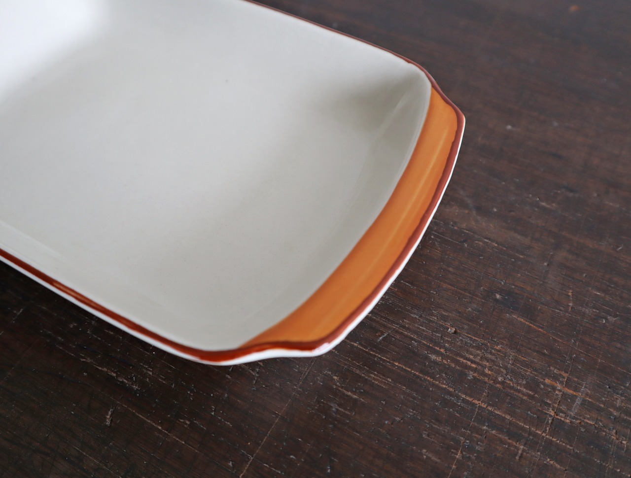 縁のオレンジが可愛らしく、深めでたっぷりの容量の器です。