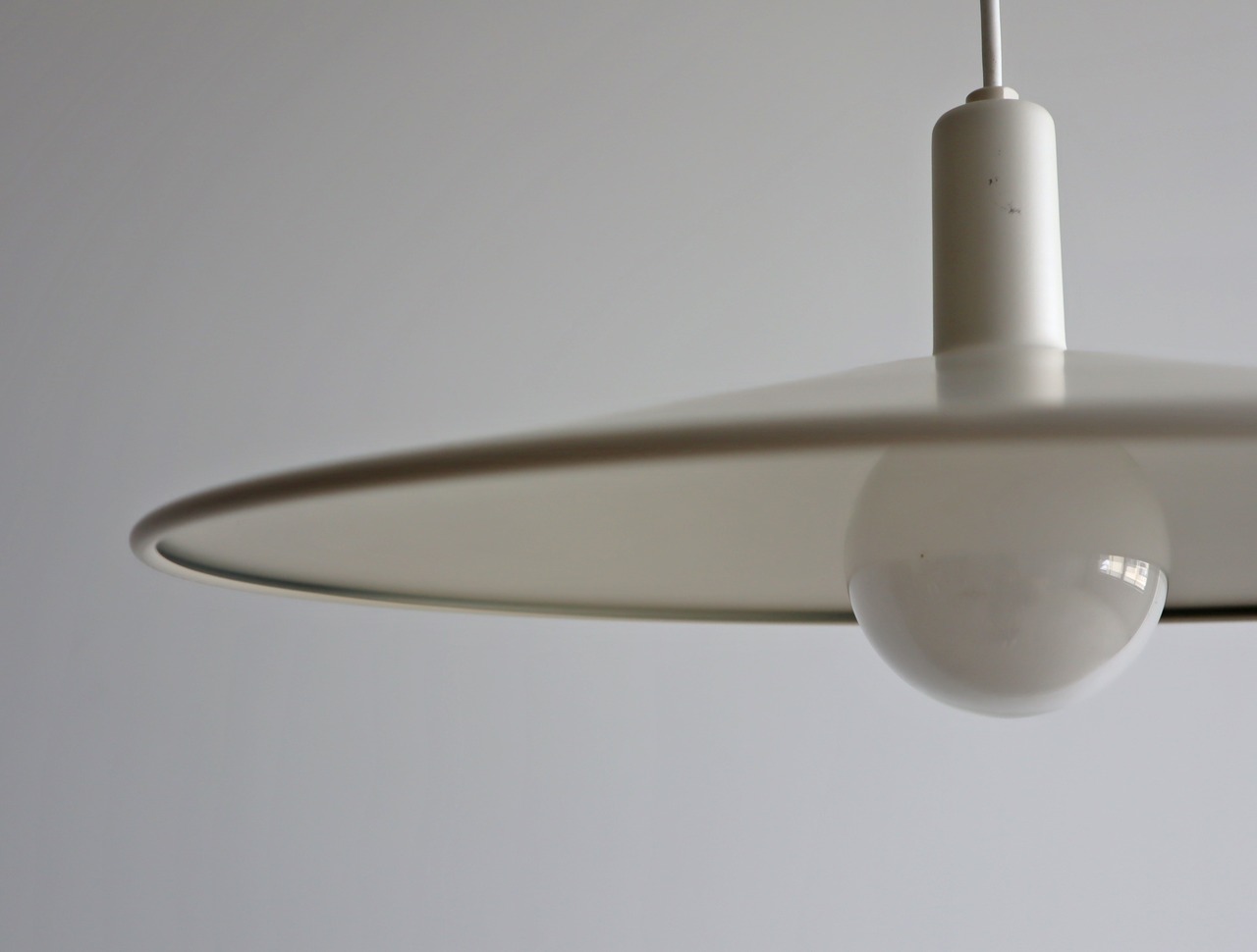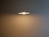 洗練されたなミニマムデザインは、平らなシェードから電球がバランスよく覗く美しいフォルム、光源が上部に抜けないタイプのシェードデザインは明暗のラインが顕著で特にダイニングテーブルの真上に合わせたスタイル向き。